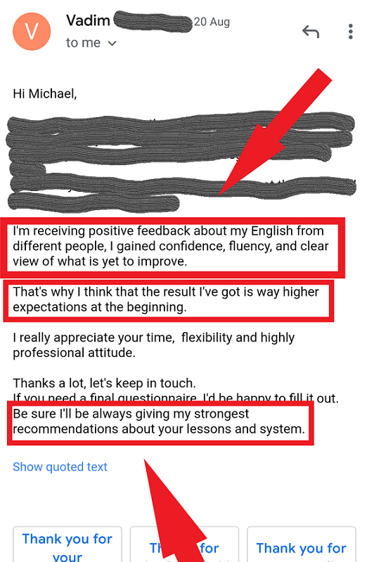 Cancel for any time... for any reason... just by emailing me at Michael@howtospeakenglishclearly.com